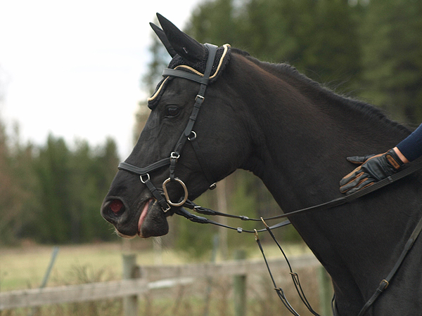 Ratsastaessa on hyvin eloisa ja pirteä. Harvoin kuitenkaan puree kuolaimeen tai on muuten vahva / vaikea. Sille on kuitenkin ostettu vähän vahvempiakin kuolaimia, muta kaikkein parhaiten se toimii kuitenkin suorilla kuolaimilla. Vipuvarrella ei ole väliä, joten maastoiluun belhamit ovat hyvät ja joskus tarpeelliset myös estetreeniin. Sileä työskentelyssä tamma saattaa alkuun olla haluton rentoutumaan ja turvautuu vaivattomaan niskalukkoon ja lyhyeen tikkaavaan liikkeeseen. Kuitenkin kun jaksaa vaatia ja ratsastaa pehmein avui tamma on täysin ratsastettavissa. Se osaa kulkea peräänannossa ja suorittaa vaativankin liikkeitä, mutta virallisesti sitä ei ole treenattu helpo a tasolle ainankaan viellä. Rataesteillä tamma on innokas ja joskus myös vaativa vauhtinsa suhteen. Kuitenkin tamma on hyvin luotettava eikä kyyläile edes erikoisesteitä. Maastoilee mielellään ja hyppää myös luottavaisesti saaden ajoittain pieniä spurtteja, mutta harvoin innostuu edes pukittelemaan.