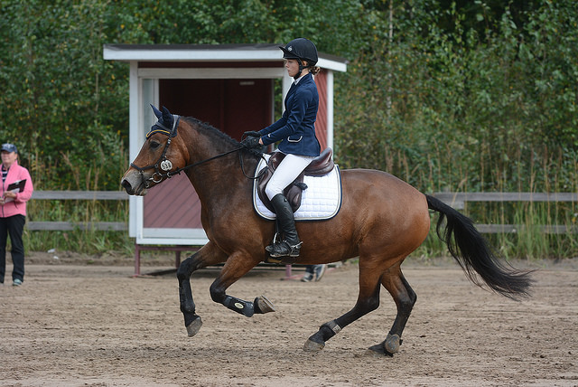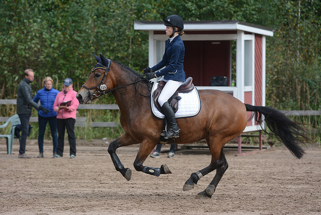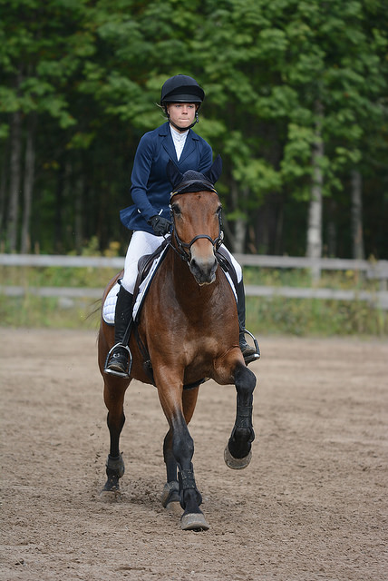 Uusi työyhteisöni on äärettömän miellyttävä ja minut on otettu hyvin vastaan. Työkaverit kunnioittavat toisiaan ja kukaan ei ole narissut minulle hevosten laitosta. Työpäivät ovat yleensä vauhdikkaita ja sopivan vaihtelevia. Tänään on pidetty jo yksi valmennus Telmalle ja nyt minulle tuotiin ensimmäinen ratsutettava. Nuori suomenhevosneitokainen sipsutteli harjoittelija Vilman vieressä kentälle. Hän avusti minut selkään ja kertoi lyhyen kertomuksen ja tietoiskun tammasta. Alkuverryttelyssä testasin perusavut läpi. Tamma jarruttaa, kääntyy ja liikkuu pohkeesta mielellään eteen, joten kaikki perusasiat ovat jo kunnossa. Pyysin hieman myös väistämään pohjetta, jossa viellä on selkeästi tekemistä, mutta jätän varsinaiset koululiikkeiden opettamiset kyllä Jasonille tai Manuelille.