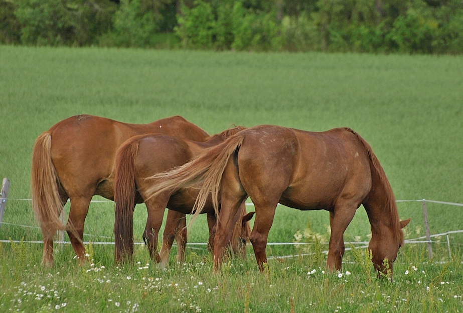 Hevoset saavat tarhailla muutenkin aina kaverin kanssa, jopa orit mikäli kykenevät siihen. Pyrimme pitämään tarhoissa vapaata heinää ja hevoset yleensä viedäänkin suoraan aamulla ulos. Ne saavat automaatista kuivat väkirehut ja henilökunta jakaa vain mössöt niille jotka ne syövät. Arkisin hevoset viedään ulos 6.00 ja vkl 7.00 tai riippuen kuka on aamussa vai jaksaako omistajat viedä hevoset valmiiksi ulos. Yksityisillä kuitenkin ajat ovat nuo ja talvella vasta kun on valoisaa, niin herkimmät ulos. Tallin omat hevoset viettävät yöt kesäisin laitumella ja päivä huilii ennen tunteja tallissa.
