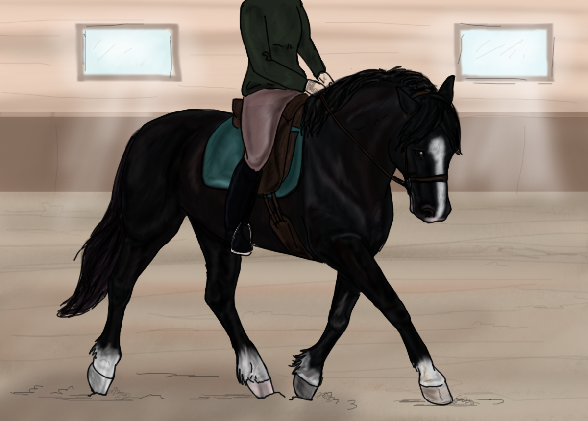 Selkäännousun jälkeen ruuna muuttuu hieman säpäkämmäksi, mutta on silti äärettömän näppärä alkeisratsu. Tonttu on taitava arvioimaan ratsastajan tason ja sillä on tasaiset askeleet, joten se olisi täydellinen opetushevonen ellei olisi taloudellisesi niin hankala pitää (syö paljon!) tai pelottaisi lapsia kokonsa vuoksi. AIka moni on ennen tuntia itkenyt ettei halua tuon mörön slkään nousta, mutta piaan on huomannut ettei Tonttu ole mikään paholainen tai raketti vaikka sillä kokoa onkin. Napakka ratsastaja saa Tontusta itri ihan oikeian kouluhevosen. Se on koulutettu hA tasolle, mutta osaa vaikeeampiakin liikkeitä., mutta sen kokoamis aste ei riitä vaativiin luokkiin. Iso ruuna liikkuu pienillä ja kevyillä avuilla melko ketterän oloisesti ja jopa jotkut koulutuomartkin ovat tykänneet siitä palkiten ratsukon ruusukkein. Hypätessä Tonttu ei ole niin varma mitä se tekee, mutta kovaa ja korkealta on sen mielestä hyvä tyyli, joten vauhti kasvaa ja jalka nousee. Vaikka ruuna on iso ja raskas se kiitää 90cm esteide yli helposti ja irtona se on loikannut jopa 110cm okserin yli, mikä on todella paljon noin raskaalle hevoselle. Mielen virkistyksesksi harrastetaan esteitä, mutta se ei ole Tontun päälaji. Maastossa se on parhaimmillaan, koska ei säiky mitään ja malttaa kuunella ratsastajan apuja. Ruunalla voi myös ratsastaa ilman varusteita, mutta tietysti mieluusti maneessa, missä ei ole herkullisia puskia häiritsemässä ruunan suoritusta.